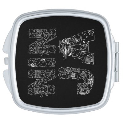 Amazing decorated calligraphic text Ninja. Each letter is a real piece of art. A compact mirror for a real ninja warrior. If you need to resize or rotate the text use "Edit design" button "Scale" option on the left side menu of the Designer Tool. You can even add your own text there. Feel free to experiment. Have fun buy one stay invisible and invincible and be happy! myEverything