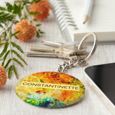 A natural abstract art of an artist's color palette. Yellow red green colors. A beautiful mix of oil paint. A digital painting from a photograph. Festive and colorful keychain for anyone. Customizable. You can change the image and you can change or delete the template name CONSTANTINETTE. You can transfer this design to a variety of other products of your choice. Please use the "Edit Design" button to adjust the picture to the shape of the particular product. It will transfer you to the Designer Tool. Use the "Fit/Fill" option (right-side menu of the Designer Tool). You can scale rotate flip the image on the product template and you can add some text of your own to it change the font or the color of the rectangular background. Just be creative buy one have fun and be happy! myEverything