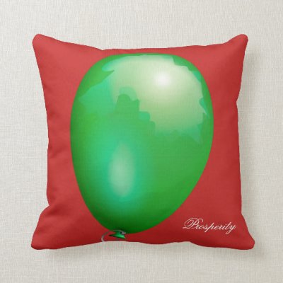 Green toy balloon against the red background. White text Prosperity in the low right corner of the pillow. Customizable two sides printed pillow. You can change or delete the text. To change the color of the background the font the location of the image and the text just use the CUSTOMIZE button. Moreover you can transfer this design to another product of your choice. Please use the transfer this design option to the right of the design information. Keep calm and be happy! myEverything