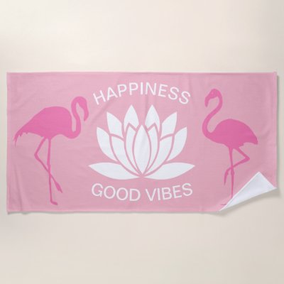 Ad: Happiness Good Vibes Pink Flamingo Beach Towel