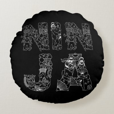 Cool decorated calligraphic text Ninja. Each letter is a real piece of art. White text against the black background on both sides. A stylish round pillow for anyone. You can transfer this design to another product. If you need to adjust the image to the size of the product just use the "Edit design" button to go to the Designer's Tool. Have fun buy one enjoy stay safe and be happy! myEverything