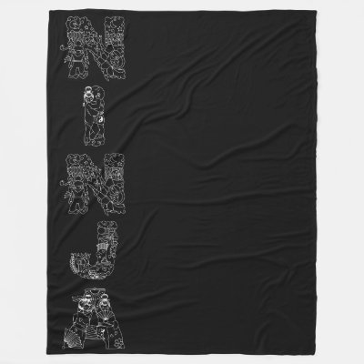 Ad: Ninja White Artsy Text On Black Fleece Blanket