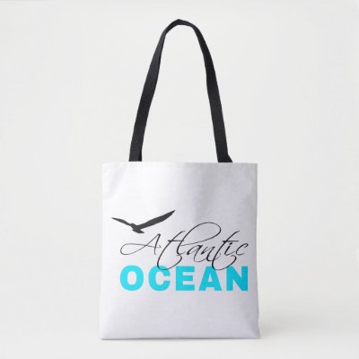 Atlantic Ocean stylized beautiful text and a silhouette of a sea bird above the text. Beautiful one-of-a-kind all-over printed tote bag for anyone. White or light background. Two side printed. Customizable you can change the image independently on each side for example to make the bag one side printed. You can also change the background color and you can choose another style of the bag. Have fun and happy summer vacations! myEverything