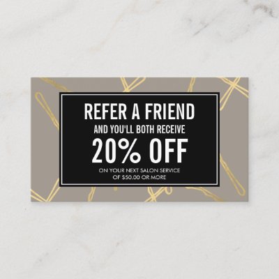 Ad: Chic Gold Bobby Pins Hair Salon Gray Referral Card