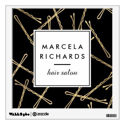 Ad: Chic Gold Bobby Pins Hair Stylist Salon Black Wall Decal