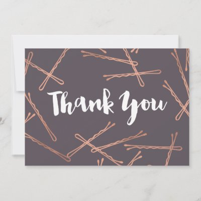 Ad: Chic Rose Gold Bobby Pins Gray Thank You Note Card