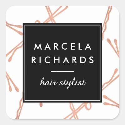 Ad: Chic Rose Gold Bobby Pins Hair Stylist Salon Square Sticker