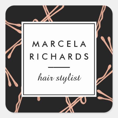 Chic Rose Gold Bobby Pins Hair Stylist Salon Black Square Sticker