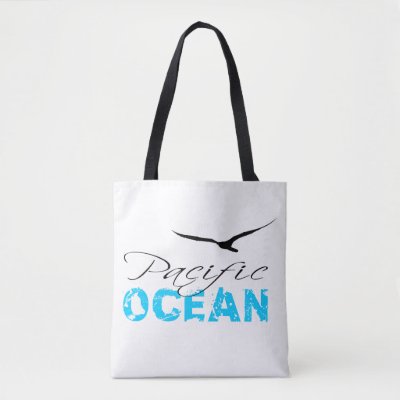 Pacific Ocean stylized beautiful text and a silhouette of a sea bird above the text. Beautiful one-of-a-kind all-over printed tote bag for anyone. White background. Two side printed. Customizable you can change the image independently on each side for example to make the bag one side printed. You can also change the background color and you can choose another style of the bag. Have fun and happy summer vacations! myEverything