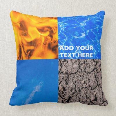 A composition of four magical elements: Fire Water Air and Earth. The Fifth one is in fact the owner of the product. Customizable pillow. You can change the image and you can change or delete the template text. Right something about the Fifth element. myEverything